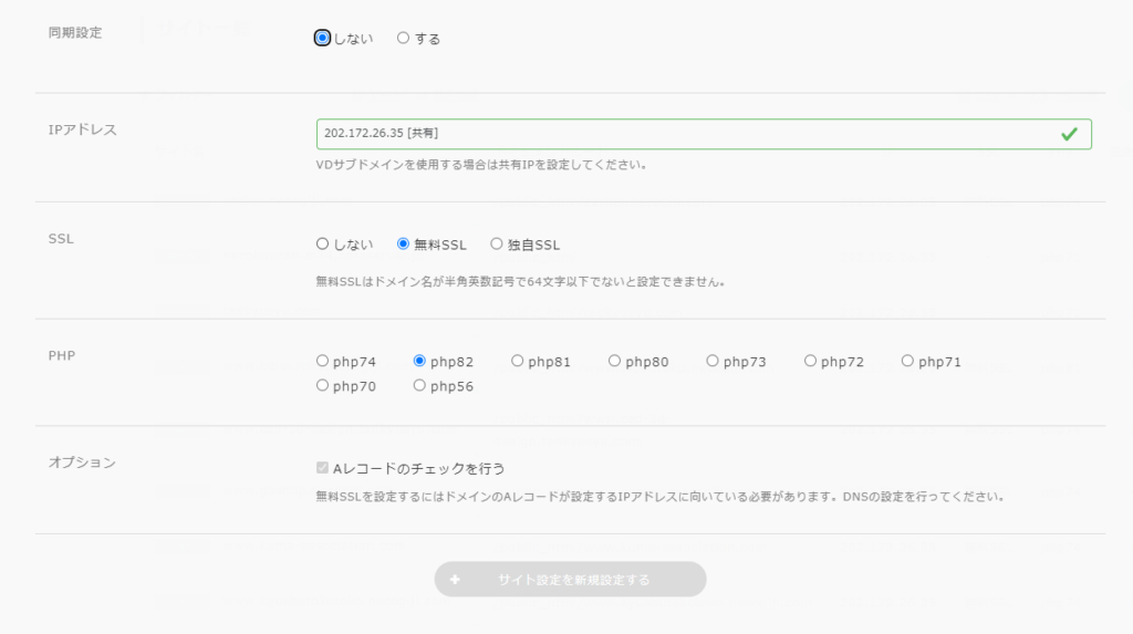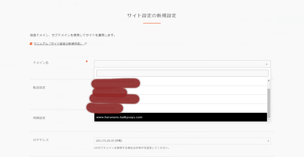 新規にサイト登録するには、「ドメイン」の登録が必要です。