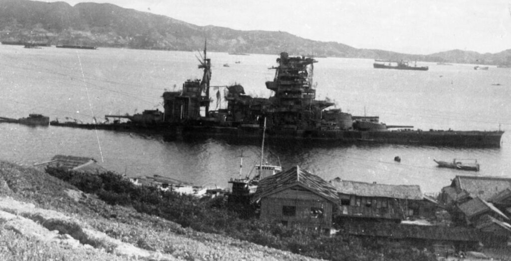 - 呉軍港 (34.23, 132.50):1945年7月28日、米艦載機の空襲で大破着底。