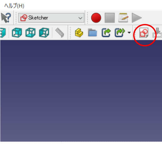 新規作成には、立体化する元の図面が必要です。その図面を「Sketcher」=スケッチをクリックしてスケッチ画面に遷移します。